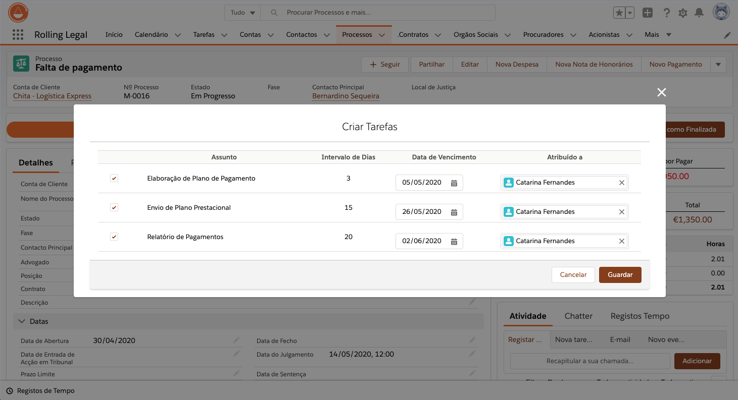 This way, it is possible to control all the tasks necessary to carry out for this Matter and there is a great time saving in their creation/management.